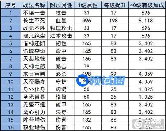 2、每种战法强化一级增加的属性并不同。以红色战法为例。