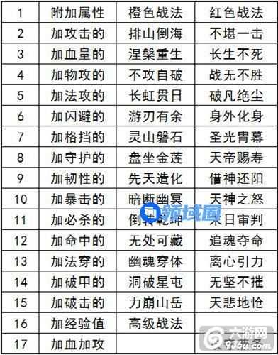 2、战法根据附加属性不同分为25类。从重要性来说主要有如下17种(只列橙色和红色):