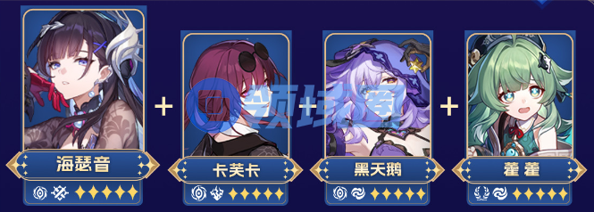 海卡+辅助组合,阮梅可以替换为缇宝、知更鸟、赛飞儿等辅助,生存位可选择藿藿、风堇、砂金等生存。