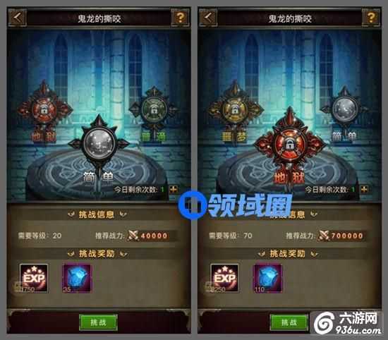 挑战条件:英雄到达20级可开启副本,每十级解锁一个新难度。