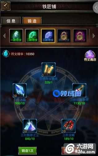 在探险挂机中,会随机掉落锻造材料,材料等级与英雄的突破等级挂钩。凑齐以下五种材料,便可进行锻造。锻造成功随机获得不同颜色的符文*1,锻造失败获得符文精华*50,符文精华可在符文商店购买成品符文(具体参见商店介绍)。