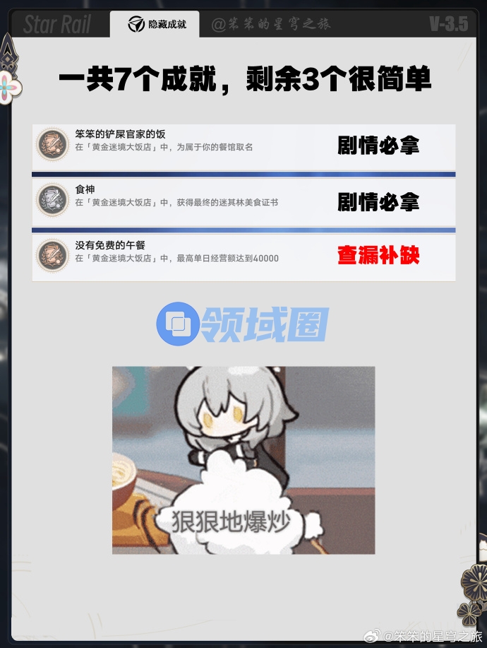 以上就是领域圈游戏为大家带来的崩坏星穹铁道黄金迷境大饭店成就怎么完成解答,大家都了解了吗?还想要了解更多的内容那就请继续关注领域圈游戏吧。