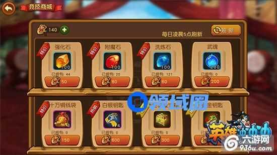 竞技商店:出售各种资源物品,玩家可以使用功勋进行购买(竞技场战斗即可获取功勋)。商店每日凌晨5点自动刷新,玩家可以使用功勋进行手动刷新。