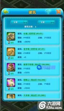 发展区、商业区、cbd区三区域固定坐标会有系统固定建筑,建筑等级为满级。