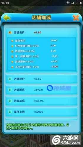 毛利润利润就是店铺收入减去进货成本(店铺毛利润=单个商品毛利*店铺顾客*销售加成),实际利润=毛利润-员工工资-维护费和税收,越高级的地段,维护费和税收比例越高,但是顾客数越多,越高等级员工一般工资越高,但是提供的销售加成也越高,所以,如何提高利润,就看大家怎么在这中间寻找平衡点了。
