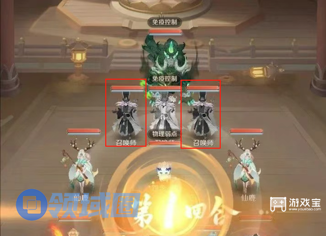 4、在中间召唤师死亡后,左右召唤师还在被控制的情况下,一个方寸控制小鹿,另一个方寸控制怨念,确保怨念无法出手,保证团学。