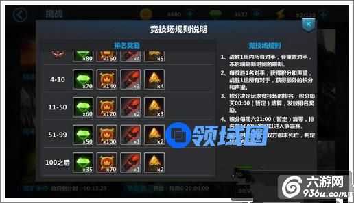 参与竞技场会获得积分,积分越高排名越高,每天清零一次发放排名奖励,最少也有35钻石。
