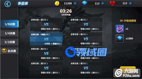 根据竞技场排行榜的前16名玩家产生比赛选手;