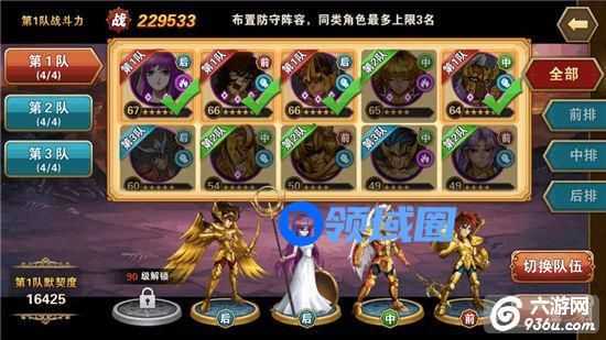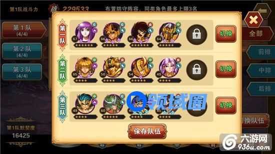 这些都是题外话说一下阵容相关的问题吧,新的银河争霸是三队竞技,每队在90级之前可以上阵四个角色,等到90以后可以上阵五个角色,对于资源匮乏的我们能够培养一个主力队伍,也就是五人小队已经很不容易了。想要培养12或者15个角色简直难于上青天,我想土豪也是如此吧。除非钻石无限多!