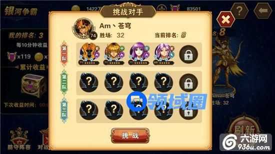 新的银河争霸三队可以随意切换,在攻打或者防守的时候不用每次都重新配置相关的队伍。这点还是比较容易操作的,在这方面可以点个赞。关于资源的产出方面,排名越高产出的资源越多这个不用说了。队伍合理的配置可以增加自己的胜率,前三名的防守阵容全部隐藏。这样增加了挑战的难度,对于防守方也是福利。
