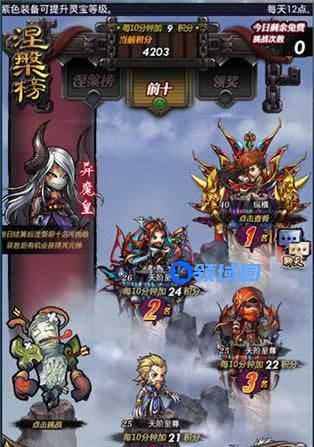 挑战涅槃榜的玩家提升排名,可根据排名的高低,持续获得不同的涅槃积分奖励(每10分钟增加一次积分奖励)。实力超群的高排名玩家对应超高积分奖励,玩家通 过涅槃积分可兑换轮回碎片,凭借轮回碎片收集心爱的伙伴。涅槃榜前5的玩家还可额外获得击杀“异魔皇”权限,击败异魔皇可获得元神奖励,助你达到更高涅槃境界,握生死,掌轮回。