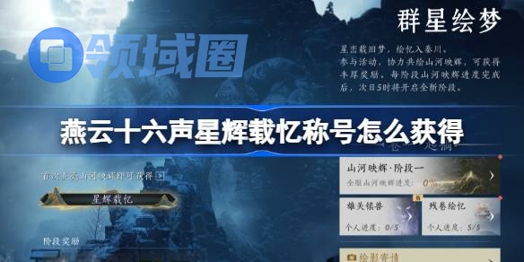 以上就是领域圈游戏为大家带来的燕云十六声星辉载忆称号怎么获得解答,大家都了解了吗?还想要了解更多的内容那就请继续关注领域圈游戏吧。