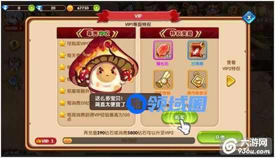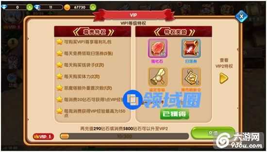 VIP1可以使用绑定钻石购买一个礼包喔,里面有好多材料,非常的超值噢!