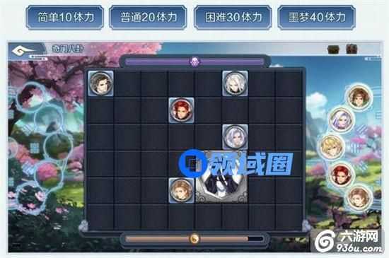 奇门八卦在一张8*6的棋盘上进行,棋盘左右两侧分别是好友角色和玩家自己的角色。