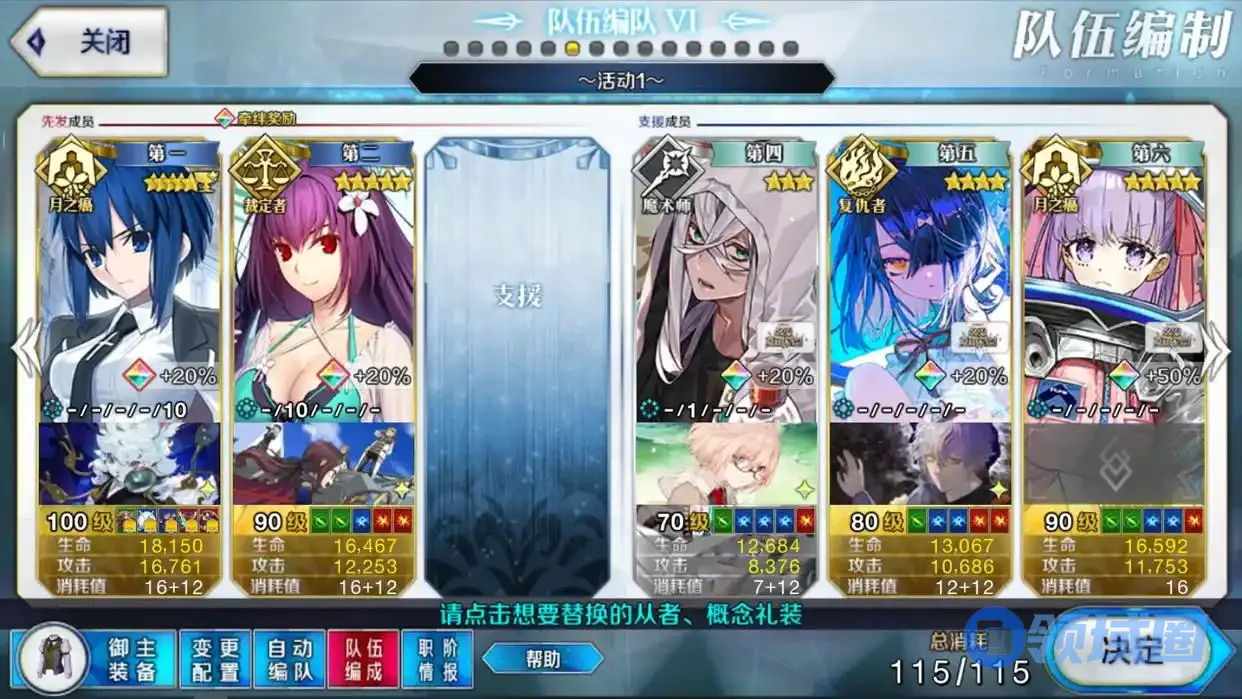 然后是2个活动组队,一个用于打前面的各种33X本,这个其实可以跟地铺队共用,但是为了避免每次都要换成活动礼装,所以这里也单独组了一个队伍。