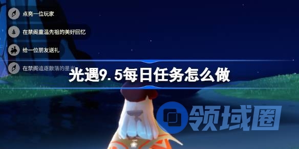以上就是领域圈游戏为大家带来的光遇9.5每日任务怎么做解答,大家都了解了吗?还想要了解更多的内容那就请继续关注领域圈游戏吧。