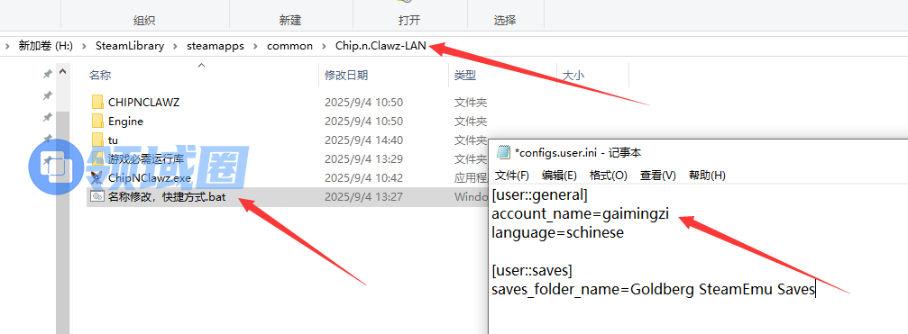双击打开游戏目录下面的“名称修改,快捷方式.bat”,找到“account_name=gaimingzi”,把“gaimingzi”改成自己想要的名字保存。