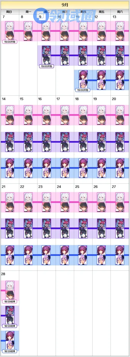 然后就是之前半月刊提到的国服自制卡池,也就是把泳装7期卡池复刻了一遍。9月7日~9月28日开启旧梅和水加雷斯卡池,9月9日~9月28日开启水伊吹和仇绘卡池,9月11日~9月28日开启RBA和水武后卡池。