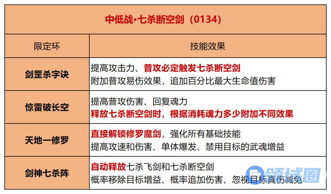 ②增幅强化普攻,即【七杀断空剑】,进场初期提供更高的爆发输出,短期内完成击杀清场。