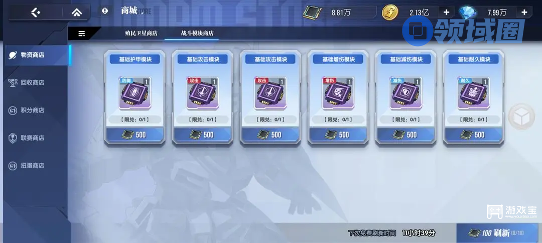 2.战斗模块商店: