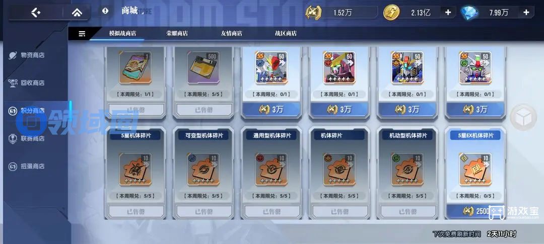 15.有些限时活动也有商店,比如抽部件的活动,现在截不到图,那个看你活动积分有多少,优先推荐限购1个的金色部件箱子,然后橙色特殊部件碎片,目的是合红色。