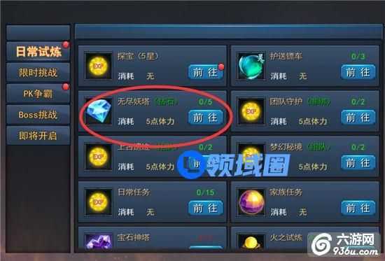无尽妖塔和排名赛每天都能免费打五次,钻石奖励十分丰厚,小伙伴们千万不要错过哟!