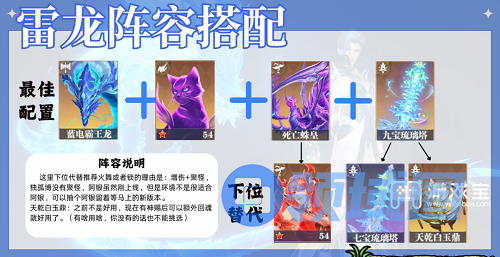 今日整理的雷龙战术体系以敏攻型后台挂件为核心玩法。若缺乏幽冥灵猫,光帝可作为平替选择——这种挂后台策略仅需角色激活被动第五魂环即可生效,无需追求面板强度,仅需等级和资质提升就行,实现低成本养成。若偏好主动作战,则可选用猫鹰标准感电流派玩法,但需注意该配置对猫鹰的强度有要求,因为需要猫鹰出场打伤害。