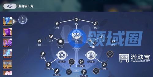 仙草所有资源必须优先集中培养强攻型蓝电霸王龙,这是我们的核心输出主力。仙草天赋加点的顺序是优先点左边魂技,因为蓝电霸王龙主要依靠魂技打伤害,一套循环中要放4次魂技,天上2次和地上两次,所以主要输出手段是依靠魂技来打伤害,而不是奥义打出高伤害。