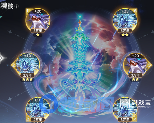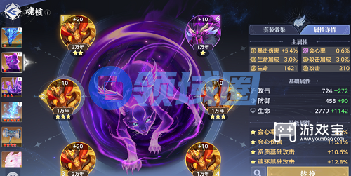选择后者的核心考量在于:1号与6号位魂核的爆率极低,所以在这两个位置我采用万妖的2件套(焰狼的4件套升星才能增加4件套增伤效果,而且2345号位置比较好掉落,所以我觉得炸星更容易点亮24星)。这里顺便讲一下,2件套的选择很多不一定是像我一样选择万妖,你可以选择九幽冥蛛皇,2件套能点亮精神力,还能吃到九幽的套装效果。