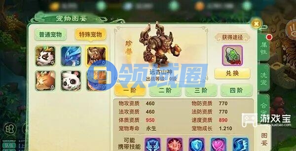 游戏中远古山神就是比较好的血敏宝宝胚子,掌命者只要连续登录就可以领取这只珍兽。远古山神的可携带等级为65级,优点是卡速加药比较主动及时,缺点是比较脆皮,因为要加敏卡速度。体耐速度资质综合来看比较高,要培养的话建议速度比人快50,其余全部加血。打书以8技能不带护肤为准:高级物免,高级法免,高级神佑,高级幸运,高级迅捷,高级隐身,高级灵敏,高级强壮。不过,血宝宝加点方式并不固定,掌命者也可以自行探索套路。