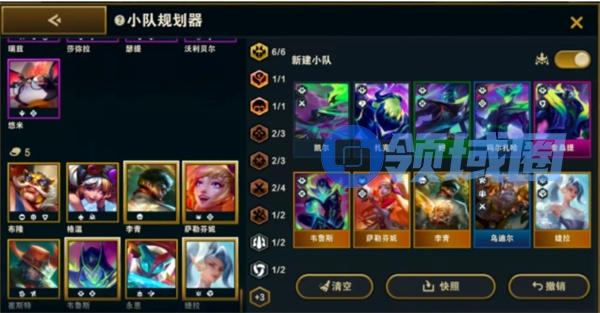 阵容组成:乌鸦、蒙多、蔚、李青、布隆、辛德拉、风女、婕拉、寒冰