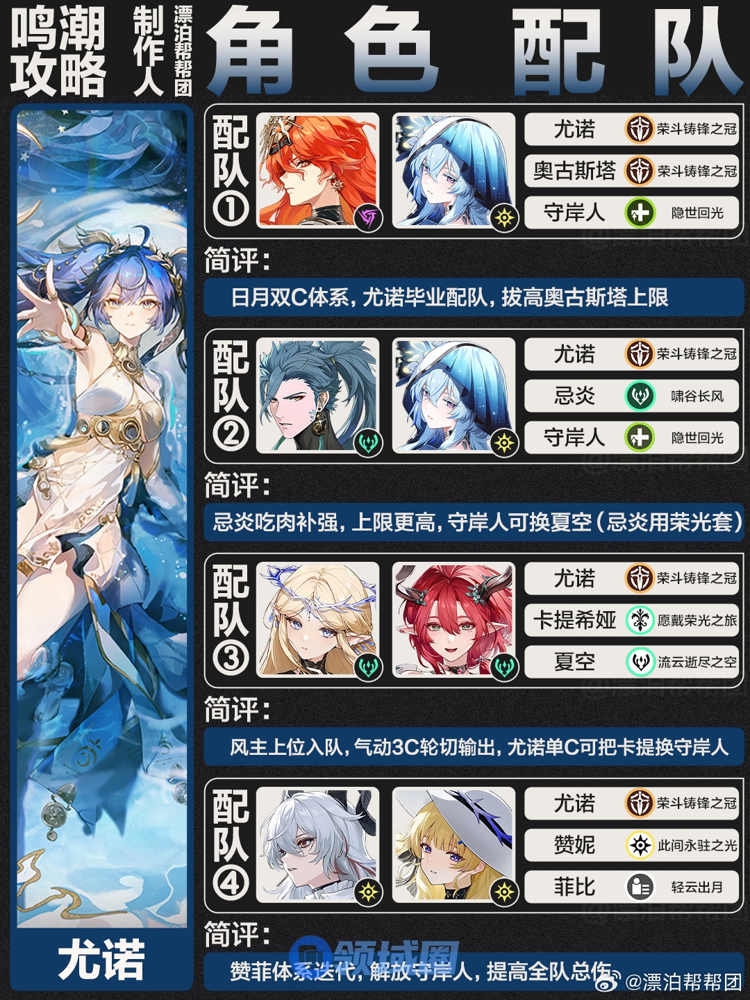 以上就是关于鸣潮尤诺阵容搭配的全部内容了,希望能为各位玩家们带来帮助,想要了解更多游戏攻略及资讯请持续关注领域圈游戏。