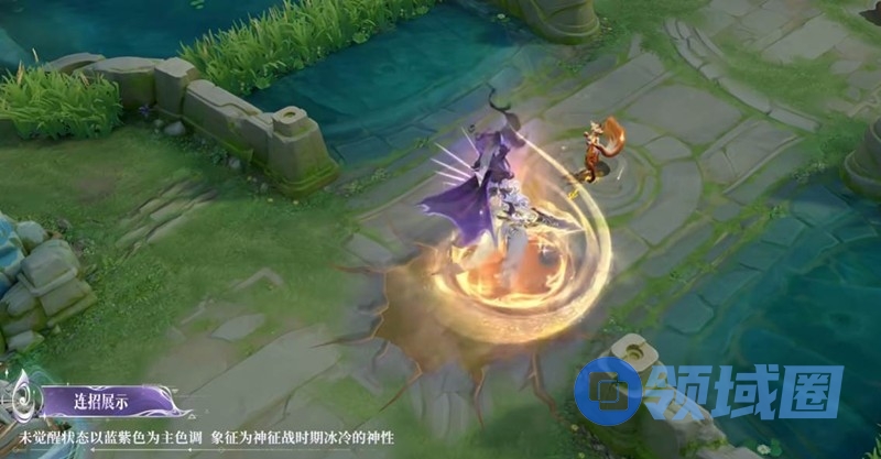 技能特效上,未觉醒状态攻击时召唤多把小剑,形成剑阵效果,体现神性操控的秩序感与距离感。真身觉醒状态攻击方式主要与战神之铠协同作战,强调毁灭与包容并存的神力。