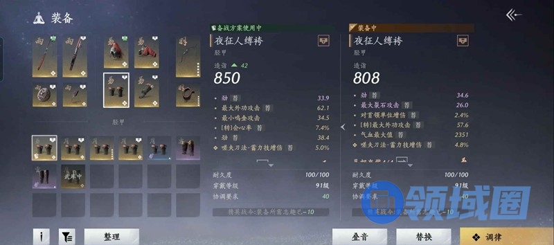护腕绑腿:首领增伤+双劲+最大外+小外敏势会心最佳,防具定音全部陌刀蓄力增伤。