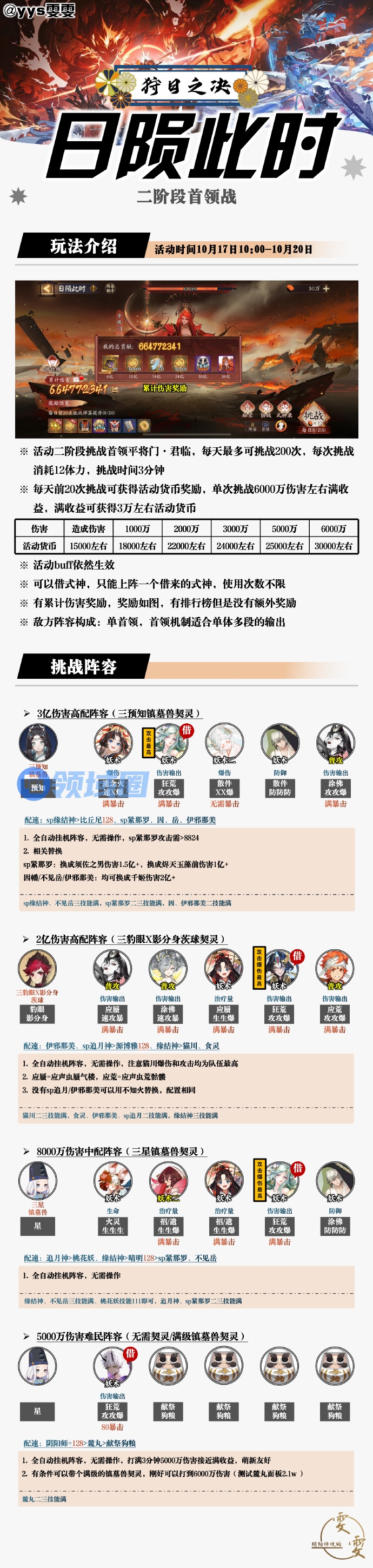 阴阳师日陨此时boss战二阶段攻略已经分享在上面,感兴趣的小伙伴可以参考本篇攻略,希望能为各位玩家们带来帮助,想要了解更多游戏攻略及资讯请持续关注领域圈游戏。