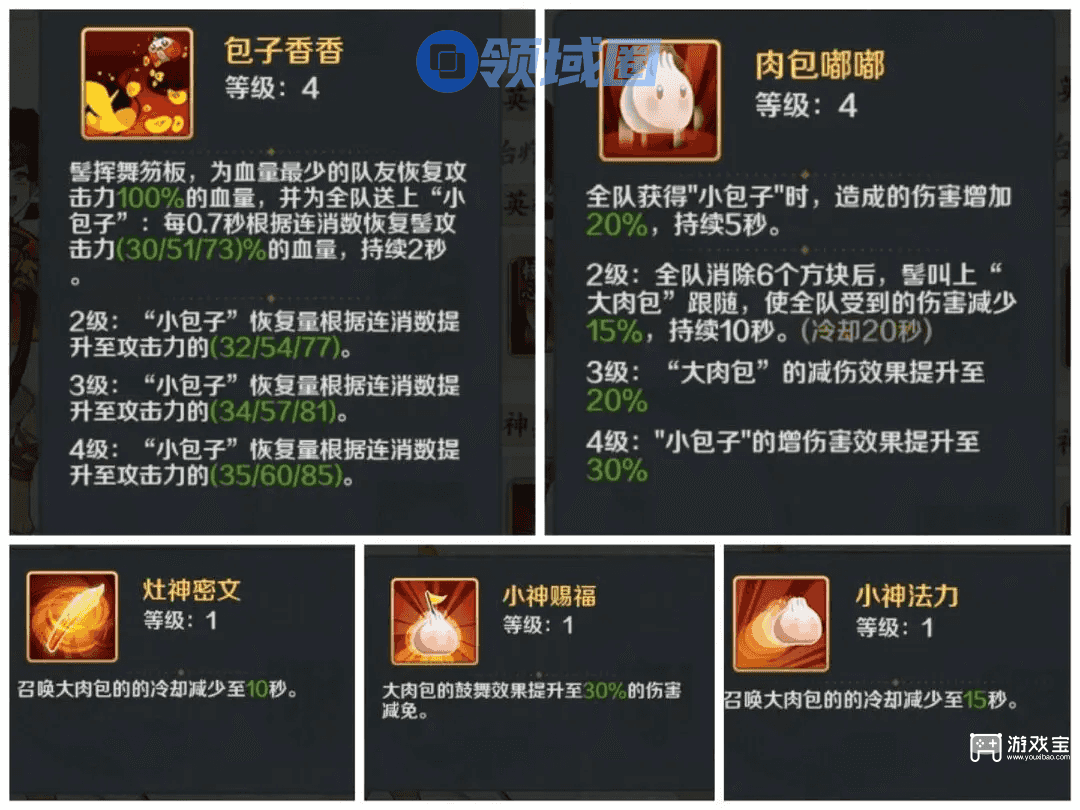 4、小灶神髻:功能型奶妈 + 增伤辅助 → 除了回血,还能给全队“增伤 20~30%”,并通过“大肉包”提供减伤。能做到“回血+增伤+减伤”三位一体。