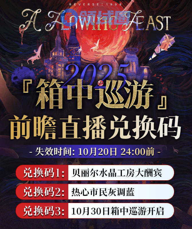 以上就是重返未来1999箱中巡游前瞻直播兑换码一览的全部内容了,希望玩家可以顺利的知道兑换码是什么,更多精彩内容请关注领域圈游戏。