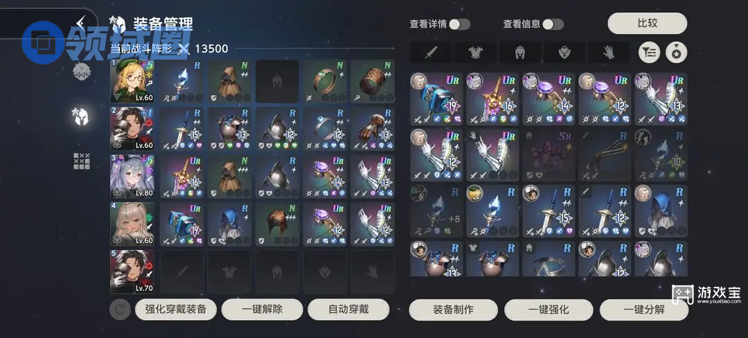 3、把第二层的嫉妒之塔打了换天赋书(用魔法队打,把之前做的两套魔法R强化+9),然后把炼金升到顶(做R级别的装备来升级),之后给物理主c做ur(衣服和头不做,饰品物魔共用),尽量做两套都强化满