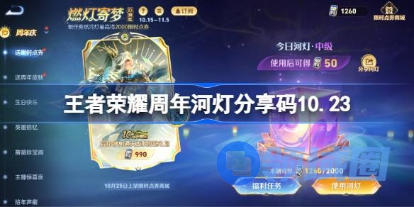 以上就是领域圈游戏为大家带来的王者荣耀河灯大全10.23,大家都了解了吗?还想要了解更多的内容那就请继续关注领域圈游戏吧。