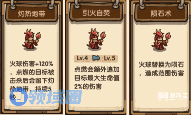 火球+1,灼热地带【点燃】,引火自焚【点燃-燃烧增幅】,陨石术【隔岸观火x2-火球伤害60】,大陨石