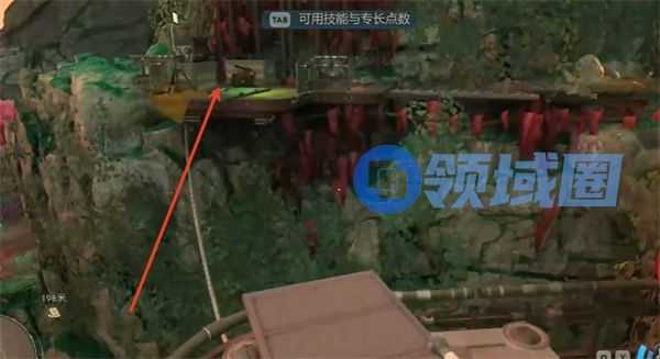 4、成功落在红桥后,向左转,顺着山体边缘移动。