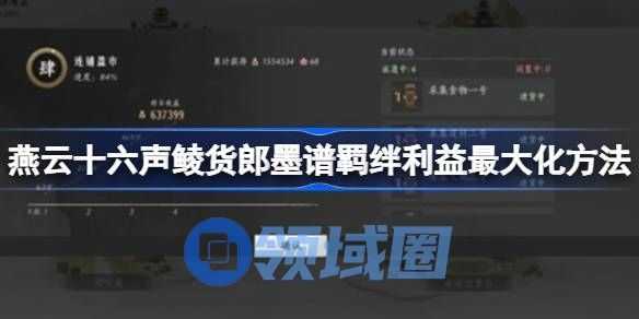 以上就是燕云十六声鲮货郎墨谱羁绊利益最大化方法的全部内容了,希望玩家可以顺利的知道怎么最大化,更多精彩内容请关注领域圈游戏。