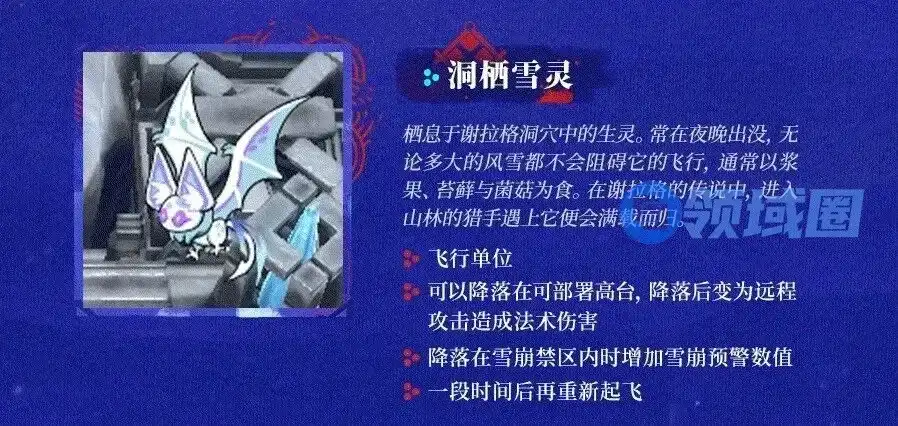 这次的活动新敌人都很卡哇伊,雪人、雪球,还有会飞的雪灵。雪灵的机制比较有意思,可以降落在可部署高台上,降落后变为远程攻击且造成法术伤害,降落在雪崩禁区的时候增加雪崩预警数值,什么还能雪崩?那是必然的,雪崩可以说是雪境为数不多的可以利用的debuff了。