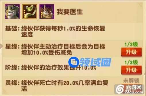 然后是仙缘的培养侧重点,个人观点,“我是医生”的缘技能主要功能是辅助,前期不推荐加高,3星激活足矣。