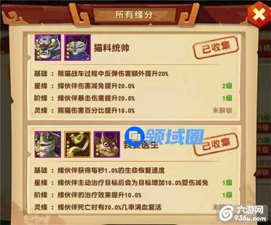 这里主要给平民玩家推荐几个比较容易达成条件的仙缘——“我要医生”和“和平谷守护者”以及“猫科统帅”,因为比较容易收集,对于平民来说,这几条仙缘中的几个伙伴的碎片通过日常副本(伙伴碎片有固定的副本出处)就可以凑齐(“猫科统帅”中的神大龙首充即可获得)。