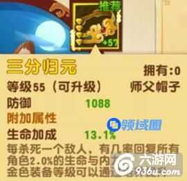 评级:这个装备属性一般般,增加防御和生命,但是效果我这里要重点说一下,大家请注意,这是所有角色都有加成,包括伙伴和角色~这个效果在爬塔显得尤其重要!