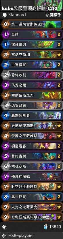 kubu欧服登顶商贩瞎和快攻瞎,两套牌交替使用,最后登顶。战绩是快攻16-7,商贩13-9。