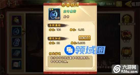 在宝物列表中选择需要强化的宝物,点击“强化”按钮
