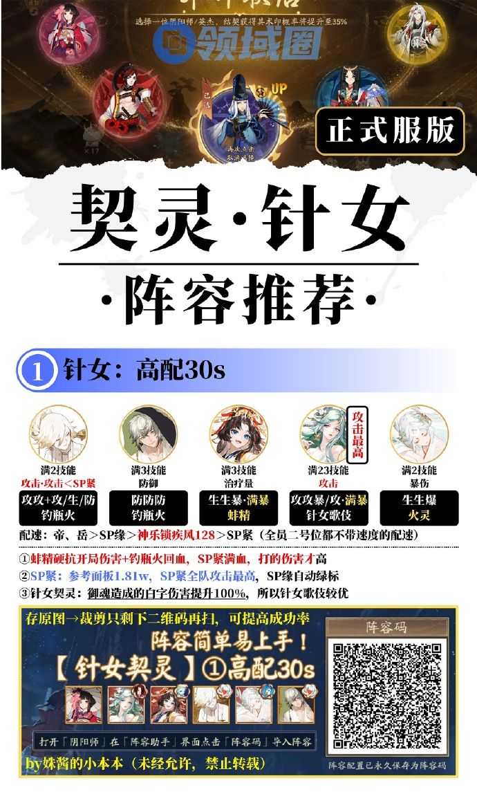 以上就是领域圈游戏为大家带来的阴阳师针女契灵阵容怎么搭配解答,大家都了解了吗?还想要了解更多的内容那就请继续关注领域圈游戏吧。
