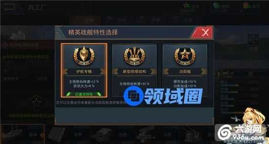 相同类型的战舰,精英特性也有所不同。精英技能主要是根据战舰具体的特性进行匹配,每艘战舰会有三种不同的精修技能,玩家舰长可以根据战舰实战能力进行选择,或者自身的喜好。